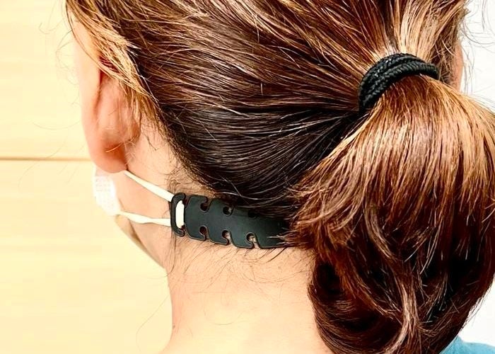 うなじのところでマスクを留めれば髪型か崩れることもほとんどありません。
