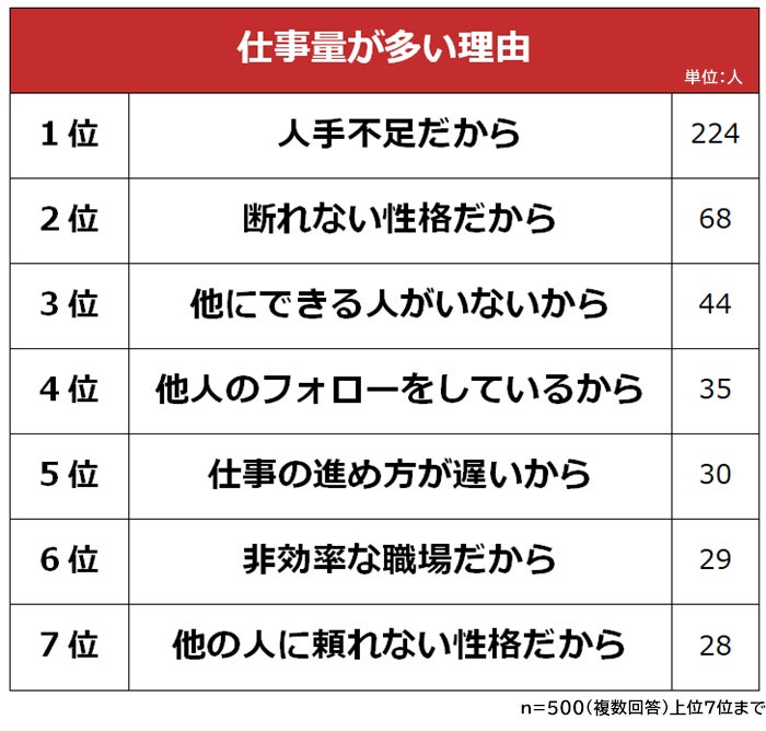 【仕事量が多い理由と解決策ランキング】男女500人アンケート調査