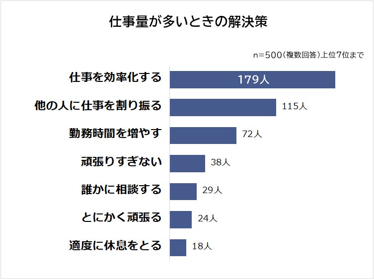 最後に、「仕事量が多いときの解決策」を聞きました。