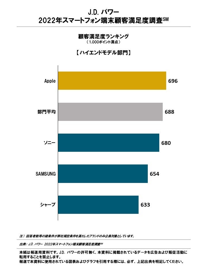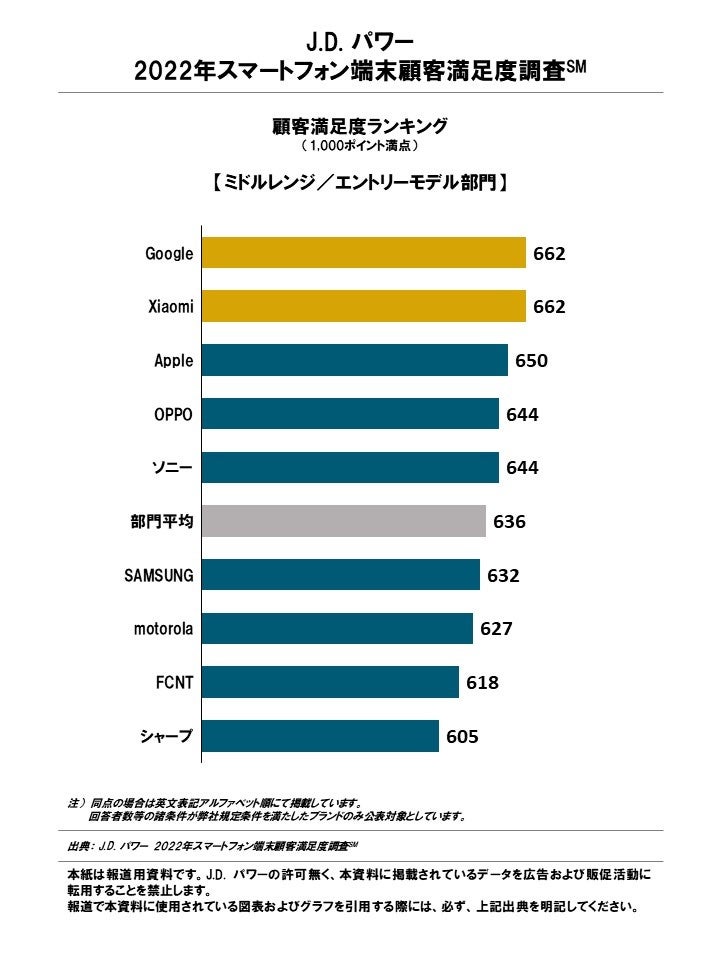 CS(顧客満足度)に関する調査・コンサルティングの国際的な専門機関である株式会社J.D. パワー ジャパン(本社:東京都港区、代表取締役社長:山本浩二、略称:J.D. パワー)は、J.D. パワー 2022年スマートフォン端末顧客満足度調査℠の結果を発表した。