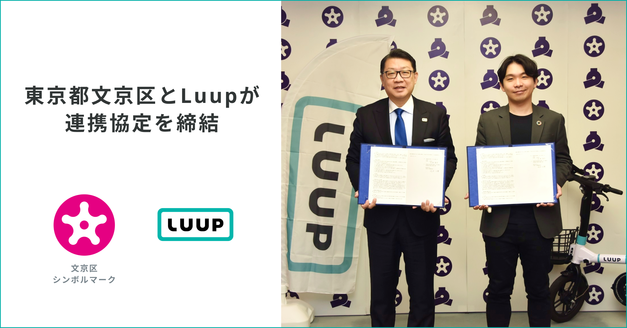 株式会社Luup(本社:東京都千代田区、代表取締役社長兼CEO:岡井大輝、以下「Luup」)は、2023年3月17日(金)に東京都文京区と、電動アシスト自転車及び電動マイクロモビリティのシェアリング事業に関して連携協定を締結したことをお知らせいたします。本締結により、両者はシェアサイクルを用いた交通安全の確保および移動の利便性の向上を図るとともに、電動マイクロモビリティへの安全啓発、地域・観光の活性化、放置自転車対策および環境負荷軽減等を目指し、取り組みを進めてまいります。