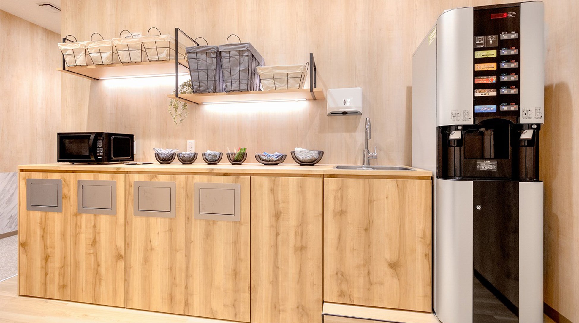 高速Wi-Fi、無料プリンターやシュレッダーなど、充実した設備を取り揃えています。フリードリンクでは、コーヒーやお茶で作業の合間にリフレッシュもできます。