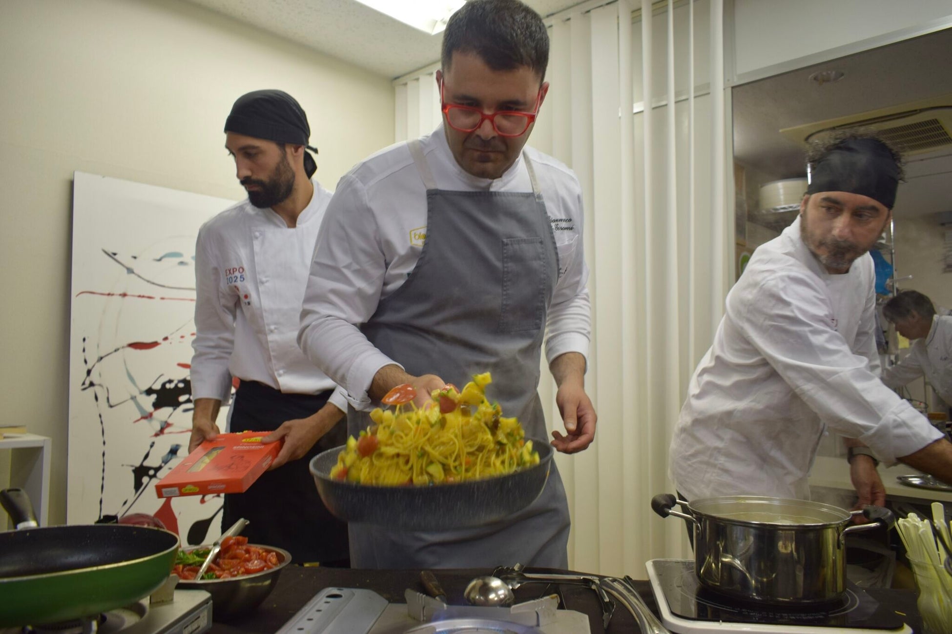 Spinosi(スピノージ)社(1933年にイタリア・マルケ州カンポフィローネで創業された老舗エッグパスタメーカー)のパスタなど、マルケ州から来日したシェフたちがマルケ州の郷土料理をパフォーマンスしました。マルケ州の最高の「DOP」および「IGP」食品を使ったビュッフェが振舞われました。マルケ州の機関、日本のマルケ州に関わる関係者が参加するなど、多くの方々で賑わいを見せました。