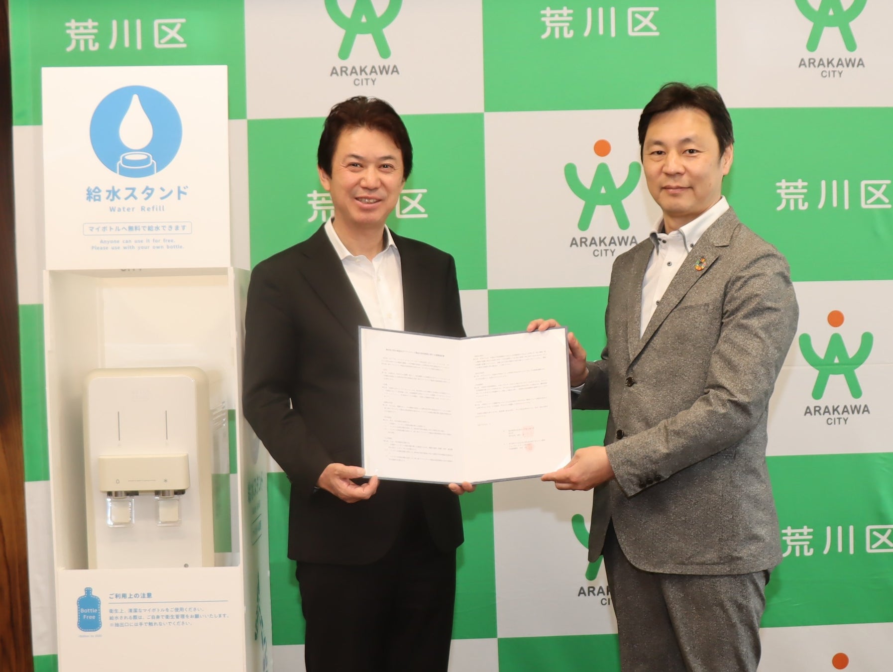 荒川区と当社は、使い捨てプラスチック削減に向けた率先行動として同区の公共施設等に「マイボトル対応型の給水機」を設置し、ペットボトル等の使い捨てプラスチック製品の使用抑制に向けて連携協力して参ります。