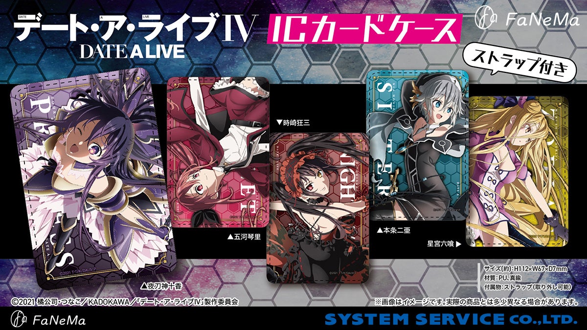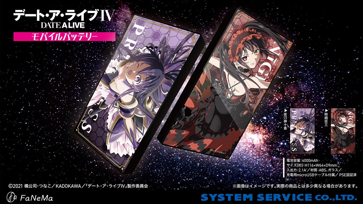 システムサービス株式会社(本社:東京都豊島区、代表取締役社長:田村宗弘)は、アニメ・マンガ・ゲーム作品等のキャラクター商品の企画・製作・販売をする自社ECサイト「FaNeMa」(https://fanema.jp/)にて、アニメ『デート・ア・ライブⅣ』より「モバイルバッテリー」「ICカードケース」を発売いたします。
