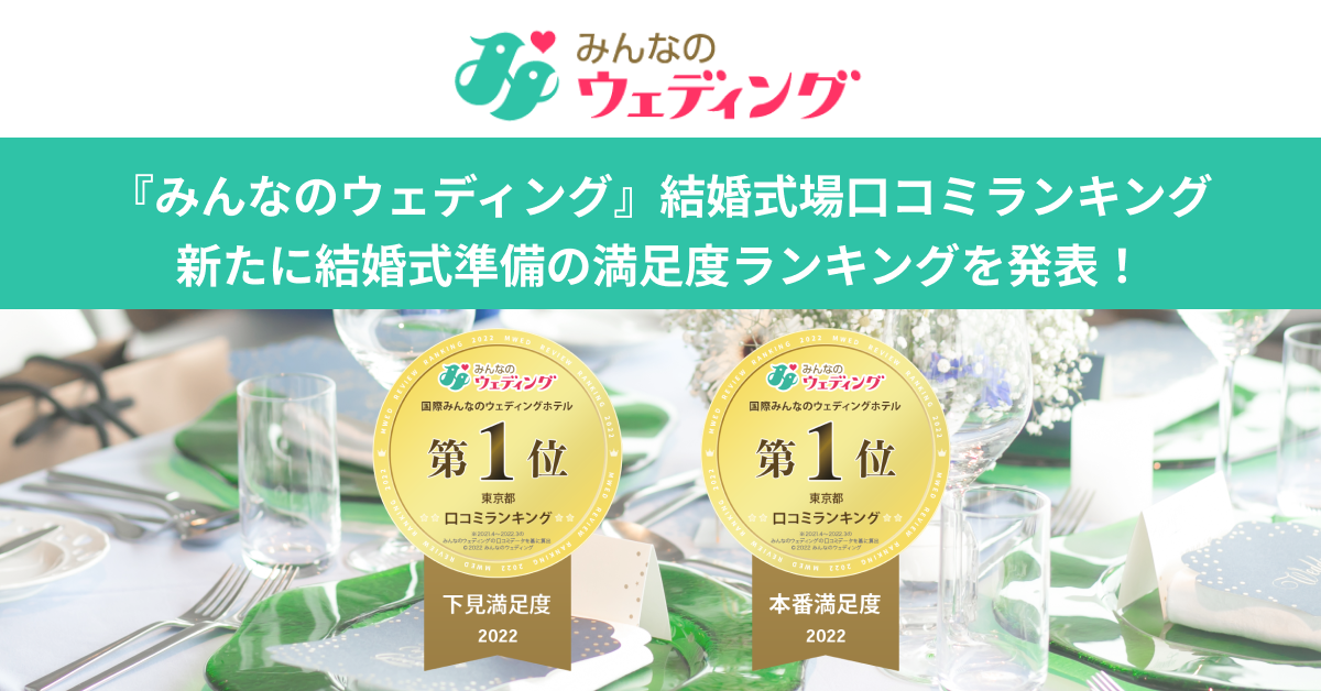 くふうグループにおいて、結婚を「新しいカタチ」でお祝いしあえるサービス・メディアを展開する株式会社エニマリ( 以下「エニマリ」)は、『みんなのウェディング』結婚式場口コミランキングにおいて、会場を決める前段階の満足度を表す「下見口コミ」と、会場決定後から結婚式当日までの満足度を表す「本番口コミ」に関するランキングを公開しました。これにより、「結婚式準備の満足度」を基準に、カップルが会場を選択できる機会を提供します。