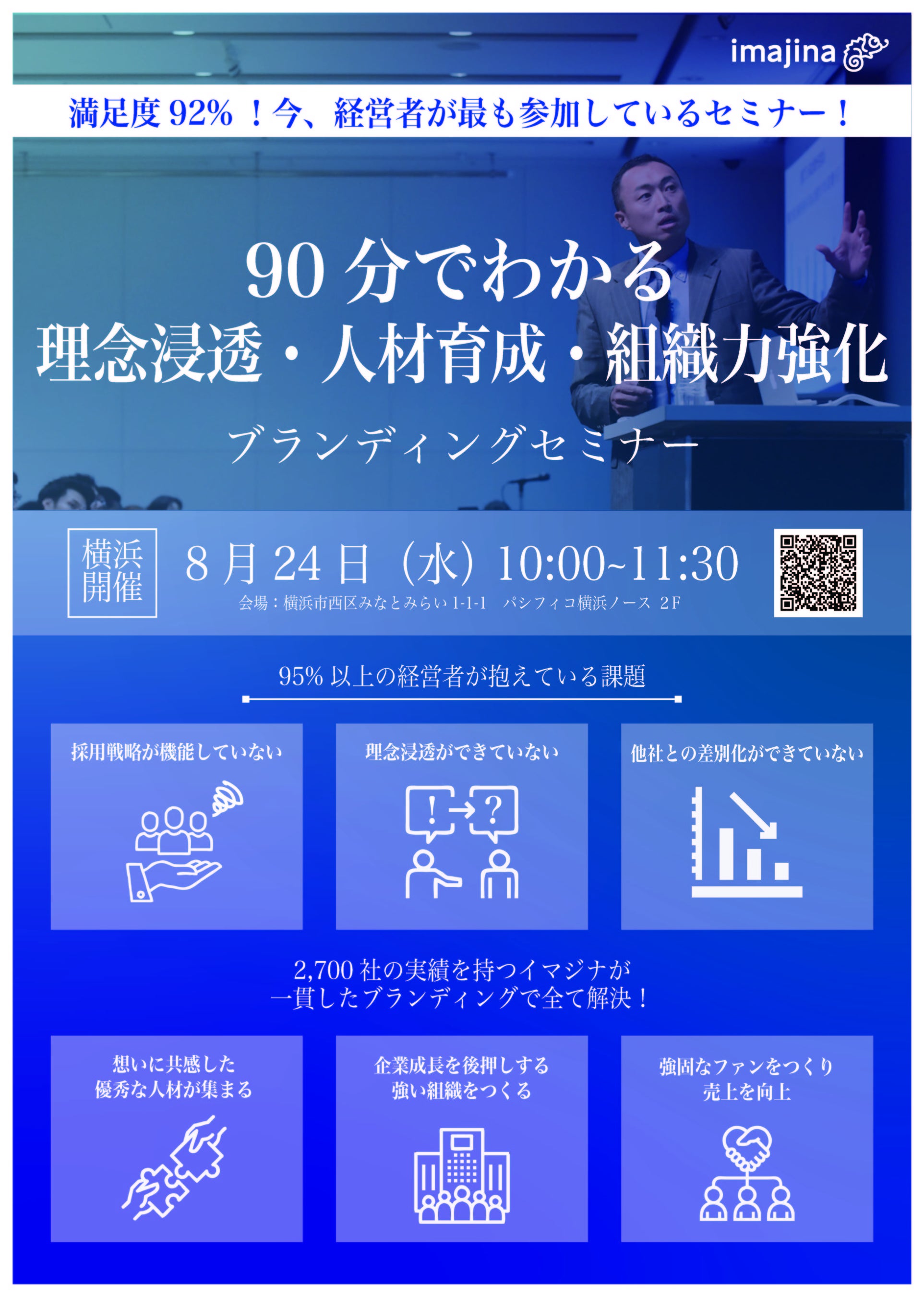 株式会社イマジナ(https://www.imajina.com/)は、皆様から多くのご要望を受けまして数年ぶりに8月24日(水)パシフィコ横浜にてブランディングセミナーを開催します。