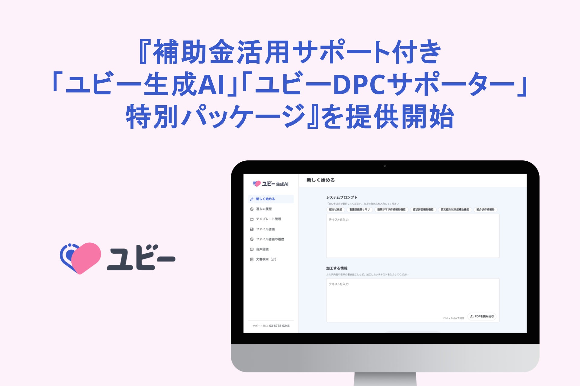 『補助金活用サポート付き「ユビー生成AI」「ユビーDPCサポーター」特別パッケージ』を提供開始