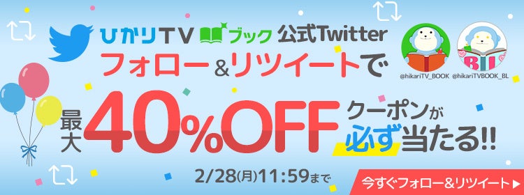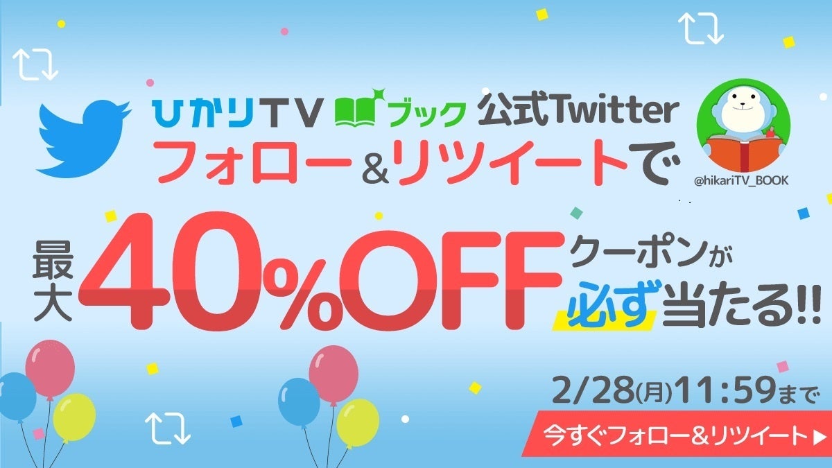 最大40%OFFクーポンをプレゼント!「ひかりTVブック 公式Twitterアカウントフォロー&リツイートキャンペーン」を2月18日(金)より開催