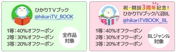 ひかりTVブック公式Twitter「ひかりTVブック八沼BL(@hikariTVBOOK_BL)」をフォローし、対象ツイートをリツイートしていただくとクーポンが当たります。