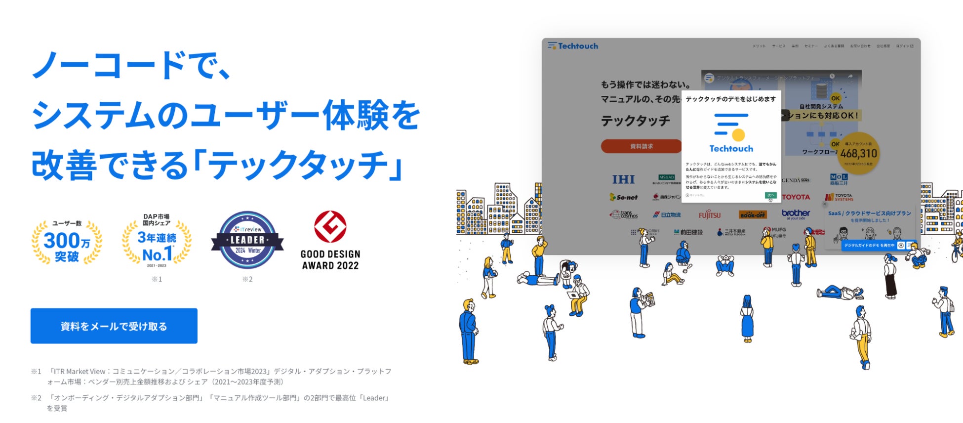 ■システム上の操作ガイドで、誰もが簡単に使いこなせるDXプラットフォーム「テックタッチ」とは