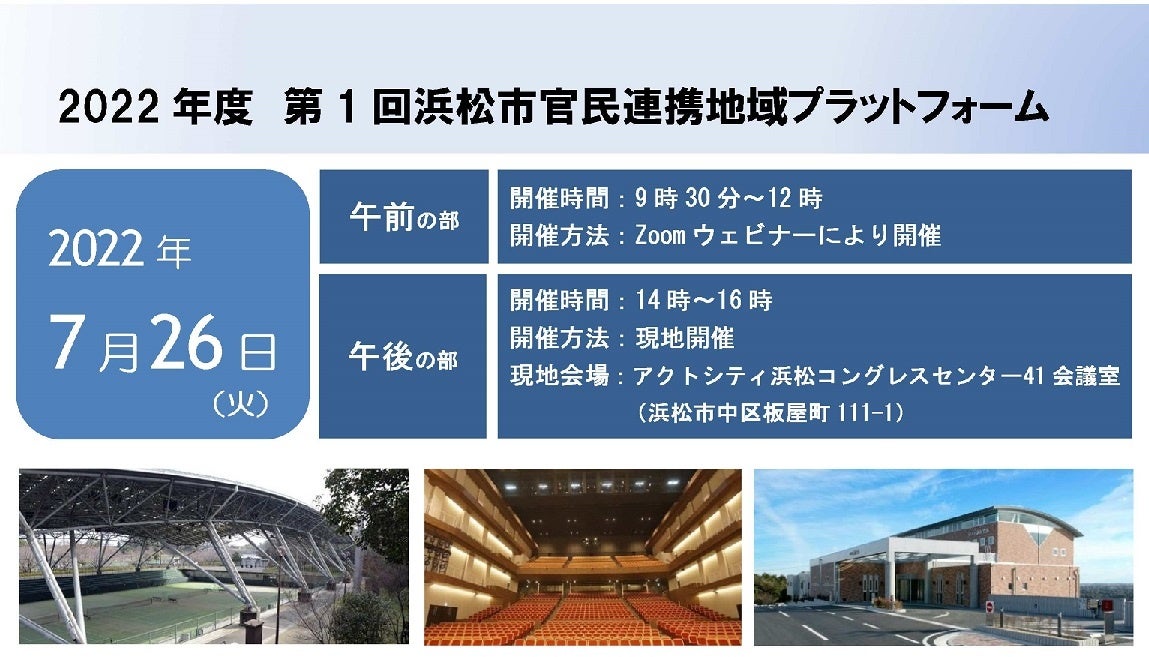 この度、2022年度第1回浜松市官民連携地域プラットフォームを以下のとおり開催します。