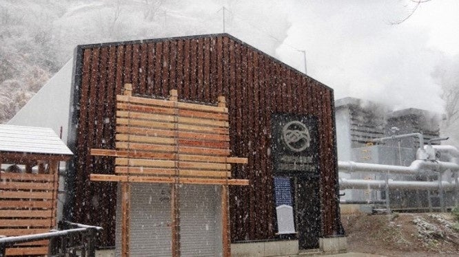松之山温泉の源泉を活用したバイナリー方式の地熱発電所です。発電所建設にともなって、今まで見えなかった井戸の状況が可視化でき、限りある温泉資源の有効利用が可能になりました。また松之山地域が主体の発電所ですので、様々な形で発電を手段とした新しい地域づくりを進めています。