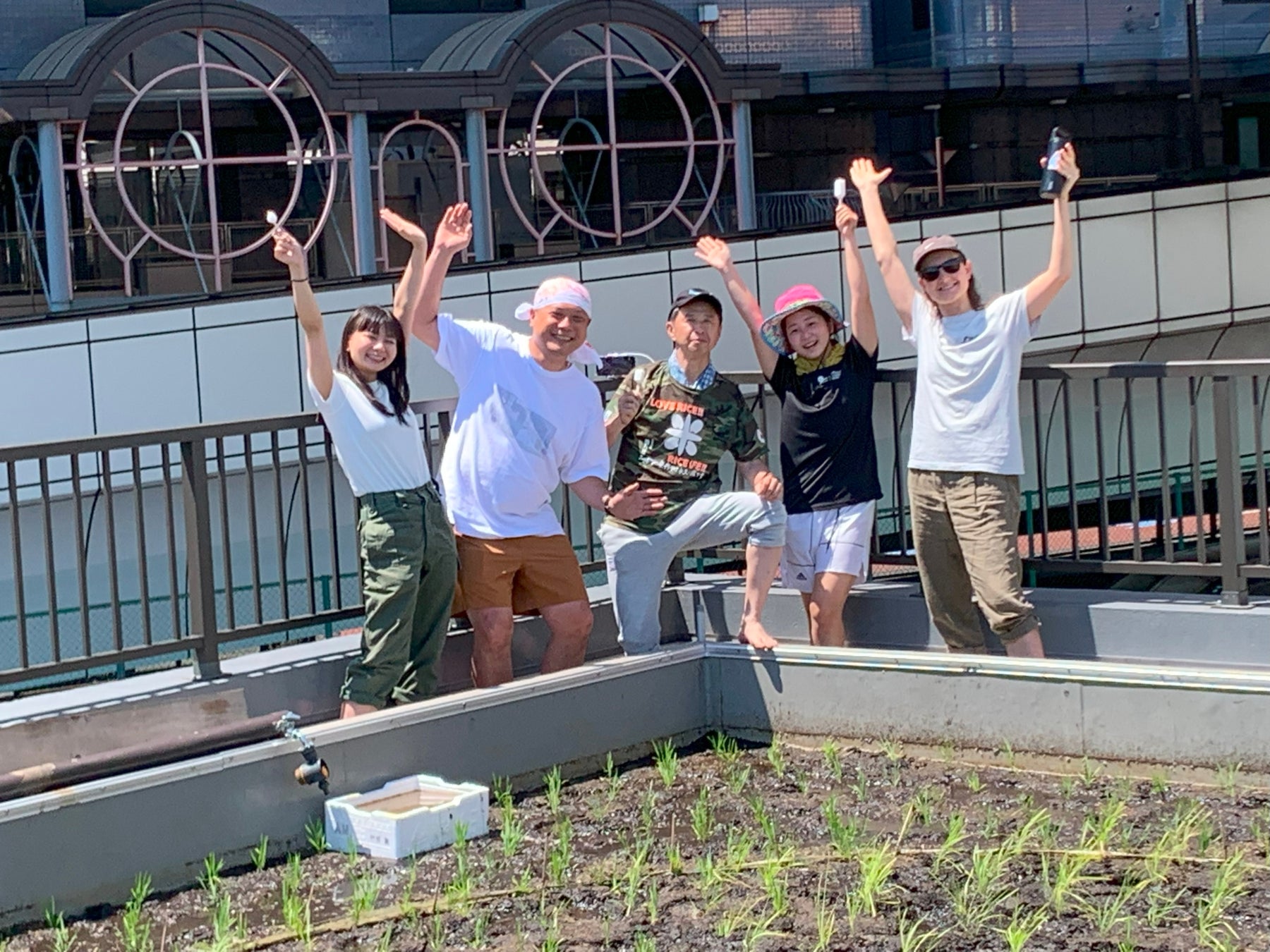 田んぼの岡野代表は、26年前から新潟県十日町市松之山に自社田んぼを持ち、社員とともに米作りを行っているだけでなく、10年前からは「棚田田んぼアート」を毎年展開し、農業とアートという面から地域活性化に貢献されています。また、三軒茶屋店の屋上にも田んぼがあり、毎年アートに取り組まれています。2024年はUPDATERのロゴマークを採用していただき、UPDATERの社員が雑草取りや田植えに参加しました。
