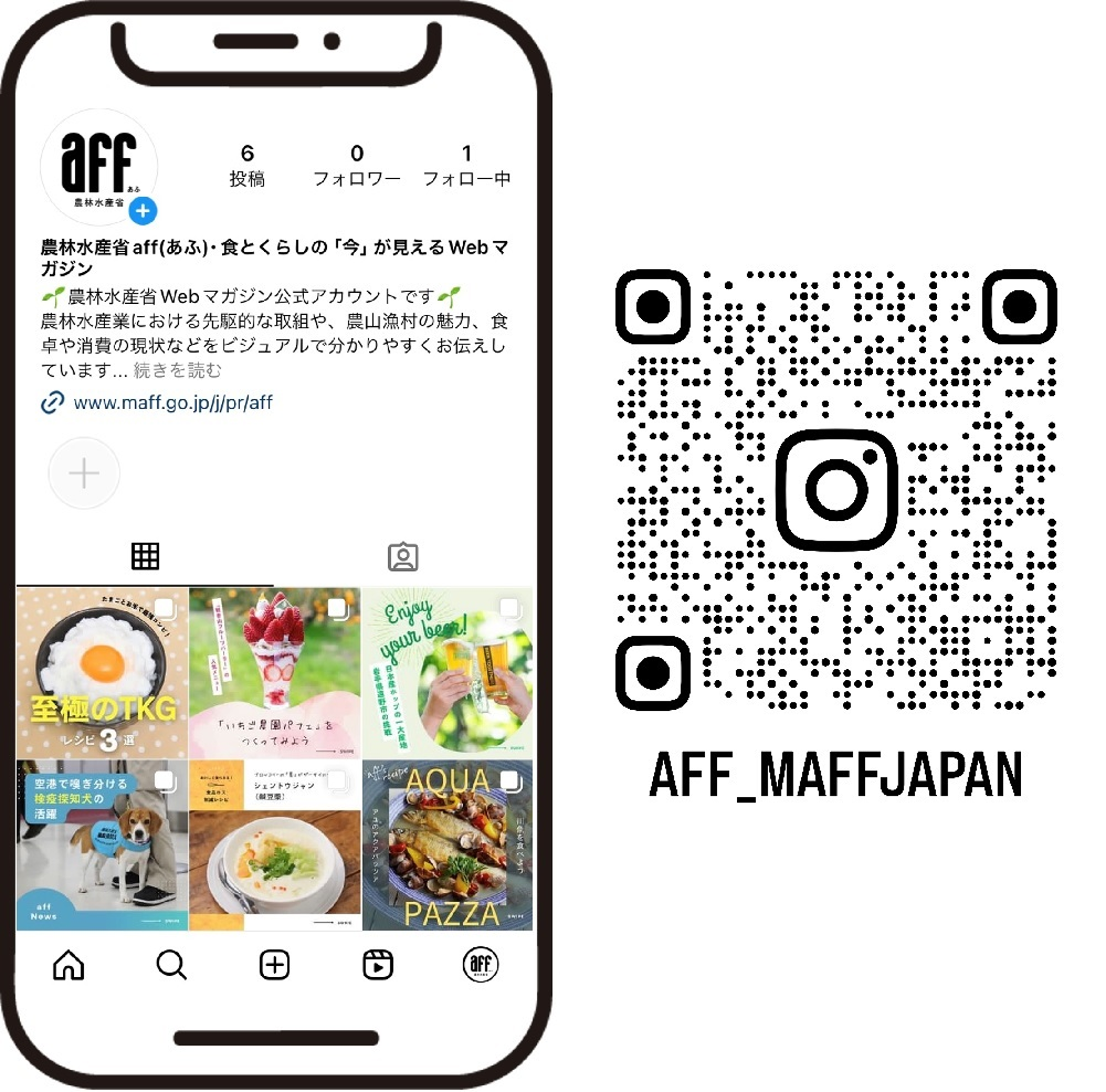 毎週水曜日11時に配信しますので、ぜひご覧ください。また、「 aff 」アカウントでの専用 Instagramも開設し、食とくらしに役立つ情報を発信していきます。無料の電子書籍版もあります。毎月最終週の水曜日に配信しますので、ぜひ電子書籍ストアでダウンロードしてださい。