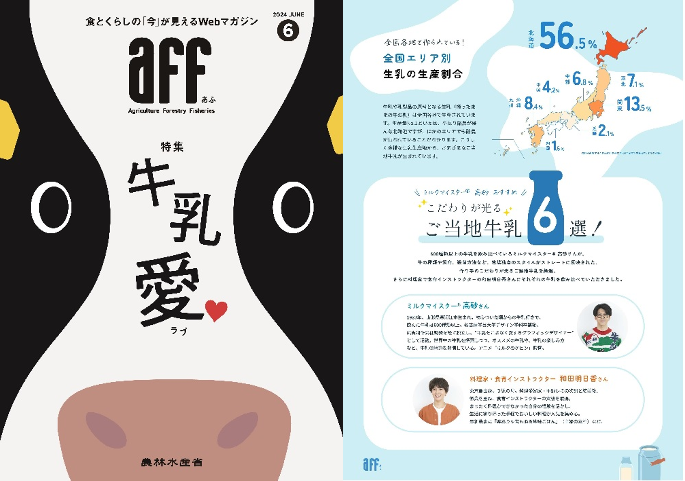 6月号の特集は「牛乳愛(ラブ)」。牛乳の飲み比べや生産現場の紹介等、牛乳に関する情報をたくさん掲載しています。