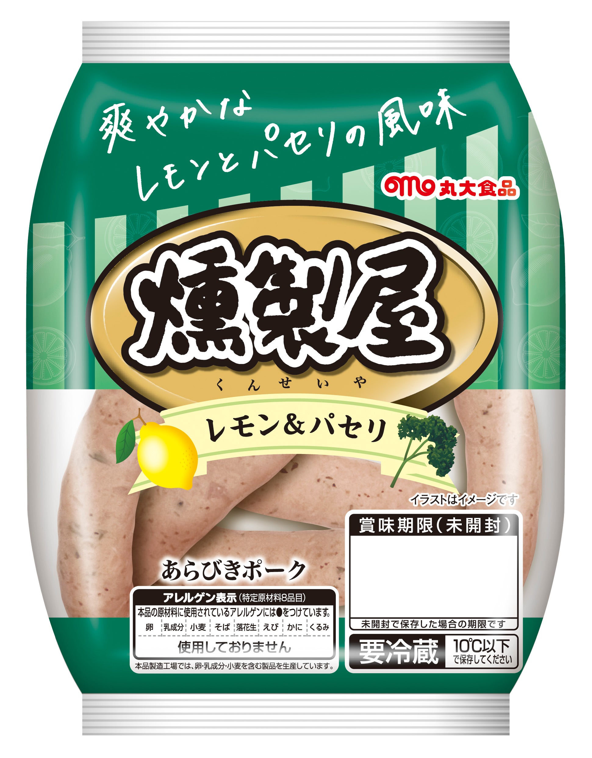 また、同シリーズの「燻製屋ウインナー レモン&パセリ」はレモンの香りにアクセントのパセリを加えた爽やかな風味のポークウインナーです。
