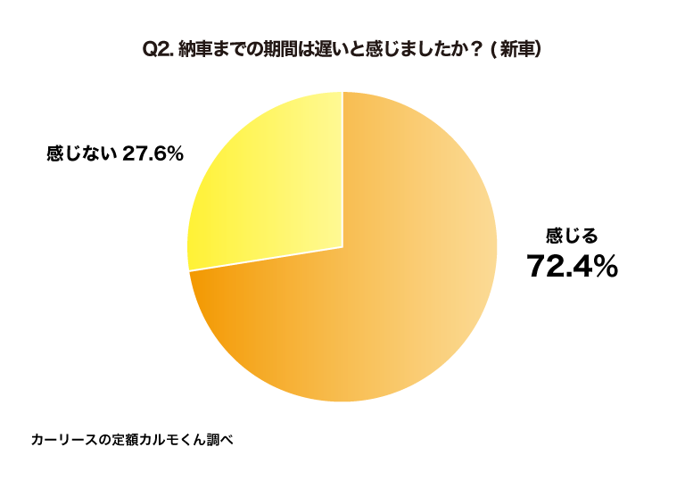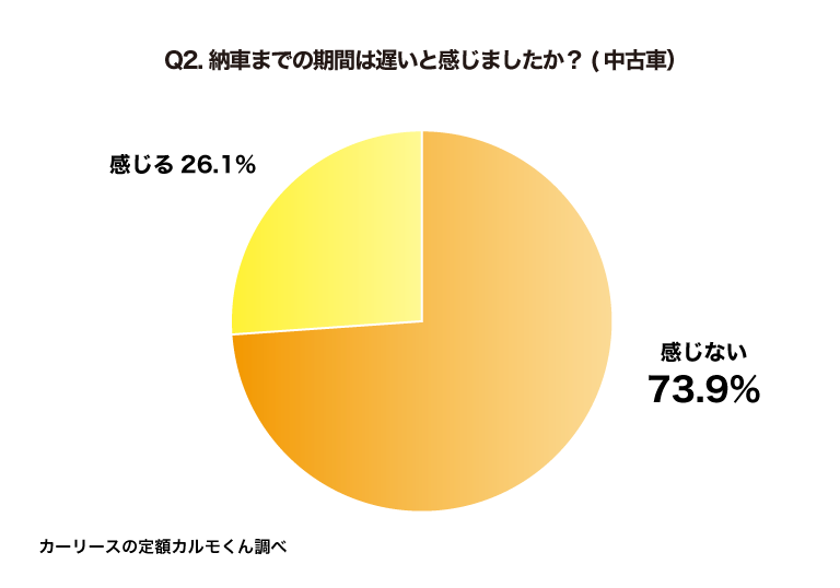 - 納車までのスピードは「遅い」と感じる方が新車で約7割、中古車では約3割