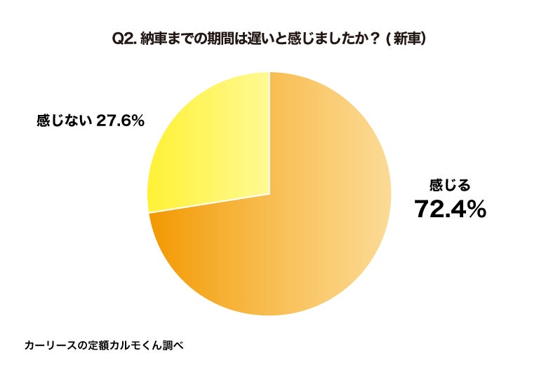 個人向けカーリースサービス「おトクにマイカー 定額カルモくん」(以下、定額カルモくん)を提供するナイル株式会社(本社:東京都品川区、代表取締役社長:高橋 飛翔)は、この1年で車を購入した全国の男女1,591人を対象に、「納車されるまでの期間」や「納車遅れの影響」などについてのインターネット調査を実施しましたので、調査結果をお知らせいたします。