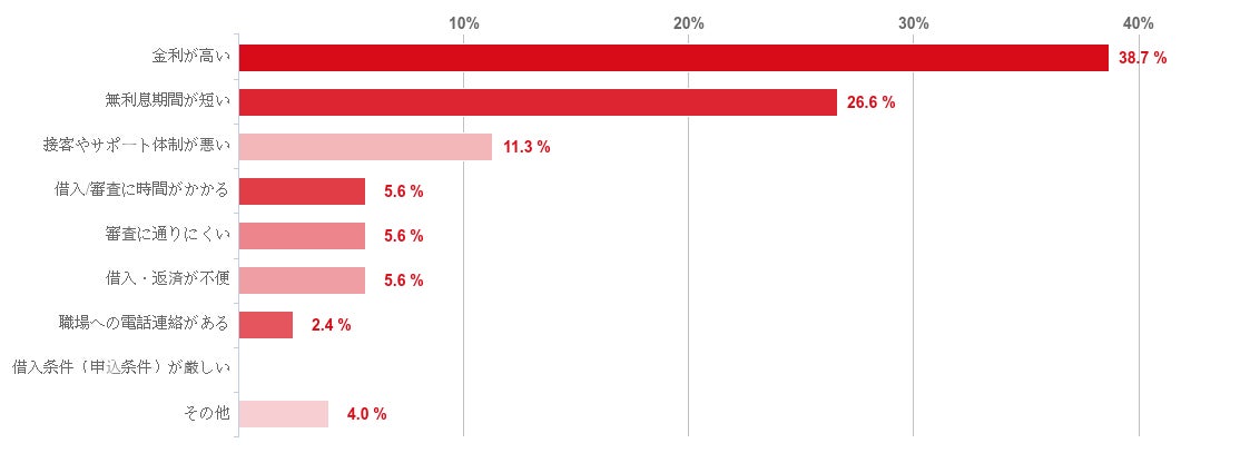 一方、SMBCモビットの改善点には、「金利が高い」ことや「無利息期間が短い」ことなどが多く挙がった。