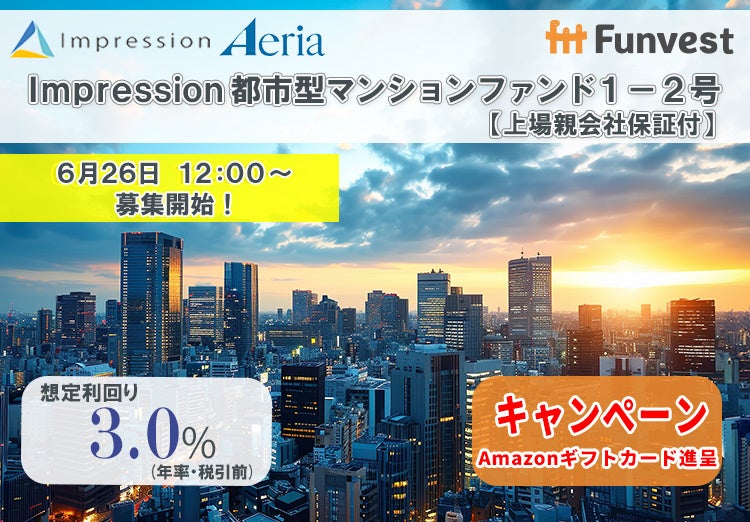 貸付型クラウドファンディング「Funvest」6/26より新ファンド「Impression 都市型マンションファンド1-2号【上場親会社保証付】」の募集開始