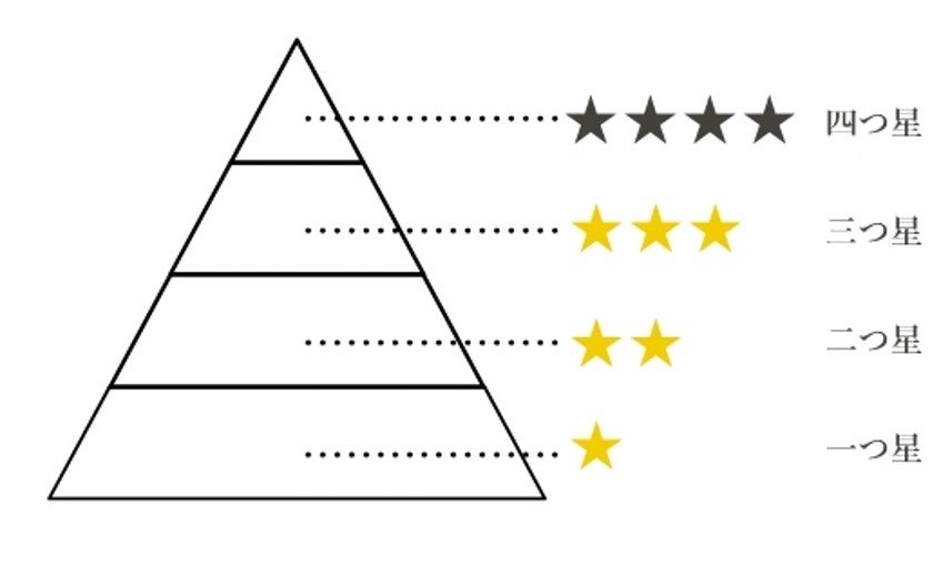 全店で店内製麺を行っている丸亀製麺では、製麺技術を画一的なマニュアルではなく、各々の判断を伴う職人技として教えています。さらに、技術力向上と教育システムの一環として、2016年より取り入れているのが麺職人制度です。技術や経験によって、一つ星から四つ星まで、4つに分類しています。