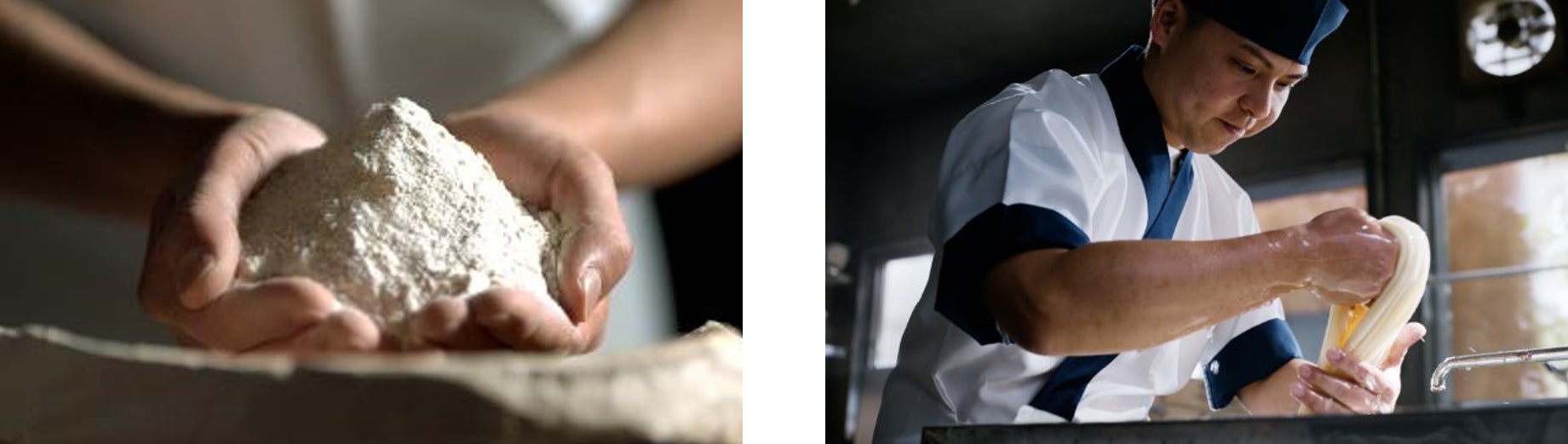技と感性を磨いた「麺職人たち」が、100%国産の小麦粉を毎日打ち、その場で麺を切って、茹でて、つくりたてをお客さまに提供しているからこそ、独自のもちもちの食感とおいしさを守り続けることができているのです。