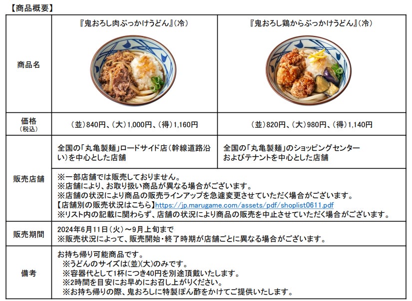 ※1 『鬼おろし肉ぶっかけうどん』の販売数は、2018年から2023年までの夏季限定冷うどんの中でNo.1(2024年自社調べ)