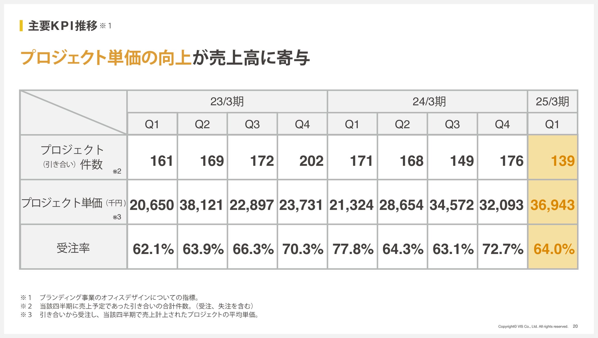第1四半期は、プロジェクト単価の向上が売上高に寄与しました。