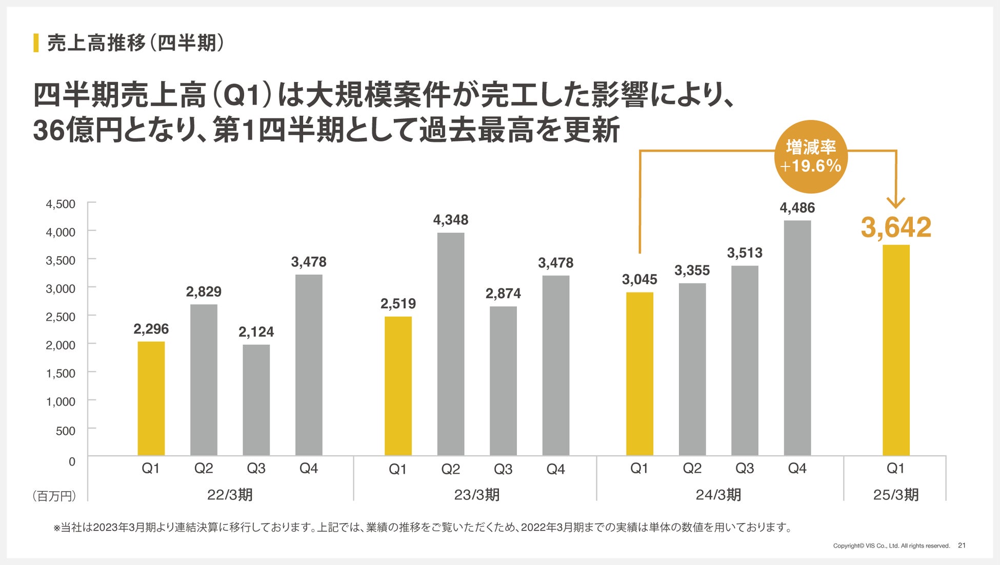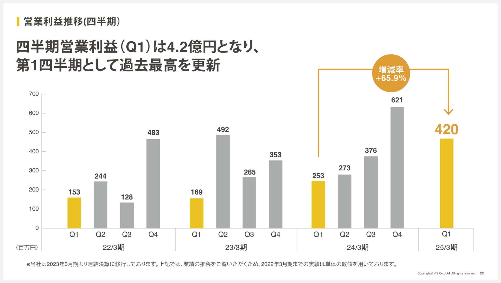 <ヴィス>第1四半期として過去最高の売上高と営業利益を更新。(2025年3月期 第1四半期決算を発表)