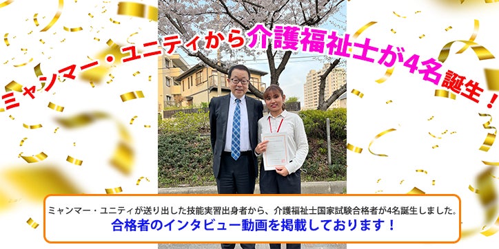 【インタビュー動画掲載中】ミャンマー・ユニティから外国人介護福祉士が4名誕生!日本人の東大合格に匹敵すると言われる超難関資格に合格!