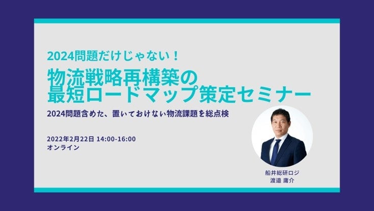 ロジスティクス・物流コンサルティングサービスを提供する船井総研ロジ株式会社(東京本社:東京都千代田区、代表:菅重宏、以下「船井総研ロジ」)は、2024年問題を含めた物流戦略再構築を検討中の企業を対象に、2024年問題への具体的対策・物流戦略再構築の手法を解説する「2024問題だけじゃない!物流戦略再構築の最短ロードマップ策定セミナー」を開催いたします。