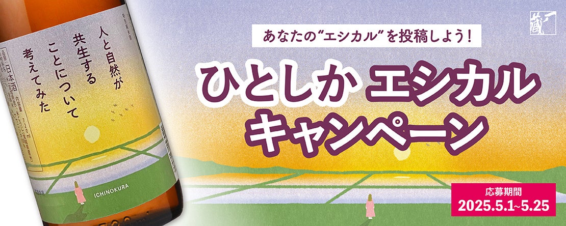 原料米にこだわり環境に配慮した商品「一ノ蔵 特別純米酒 人と自然が共生することについて考えてみた(略して“ひとしか”)」に関連し、「エシカルなこと」を題材としたSNS投稿キャンペーンが開催される。
