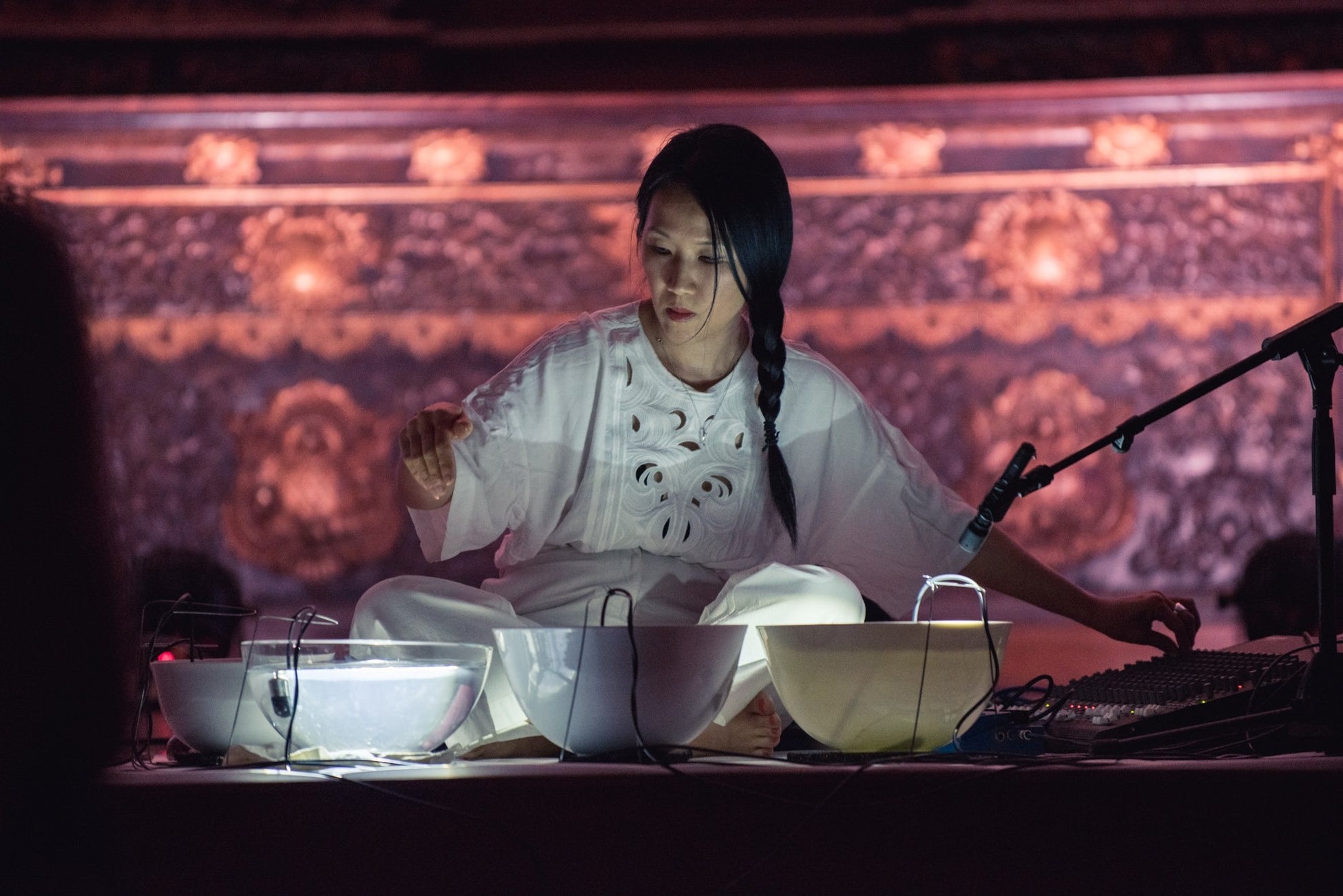 ・トモコ・ソヴァージュによる、水と器、身体の関係性から立ち上がる音のパフォーマンス《Waterbowls》。