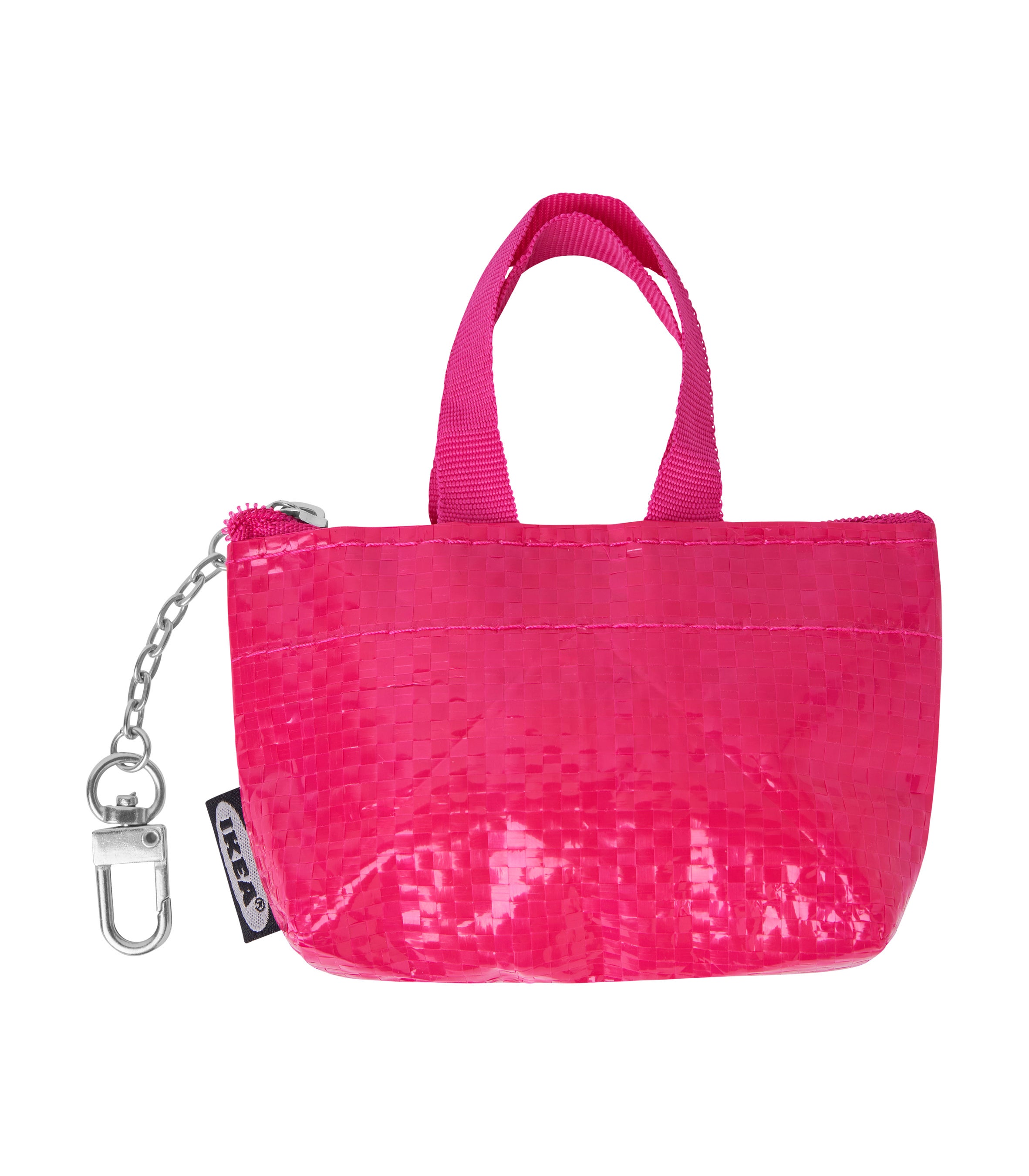 鮮やかなピンクのバッグが登場。ファスナー付きなので中身がこぼれず、チェーン付きなので簡単にベルトやバックパックに取り付けられます。鍵や小銭、その他の小さなアイテムを、バッグやリュックの中に見つけやすく入れておくのに便利。