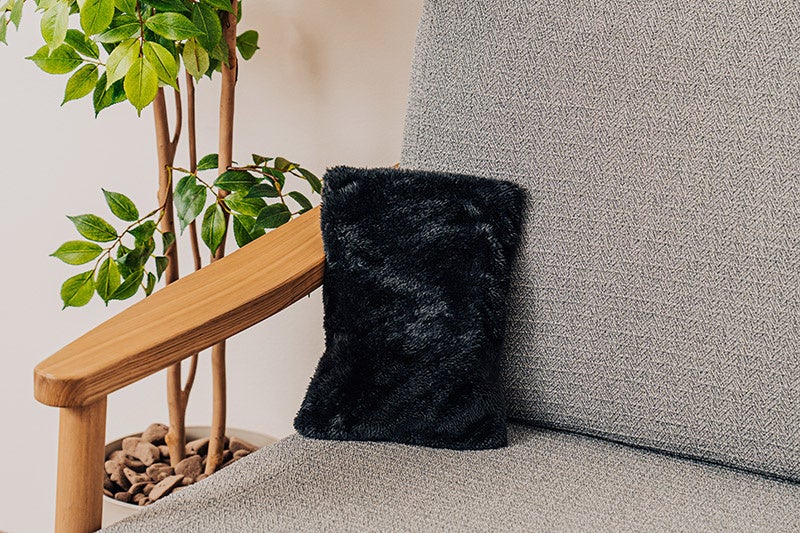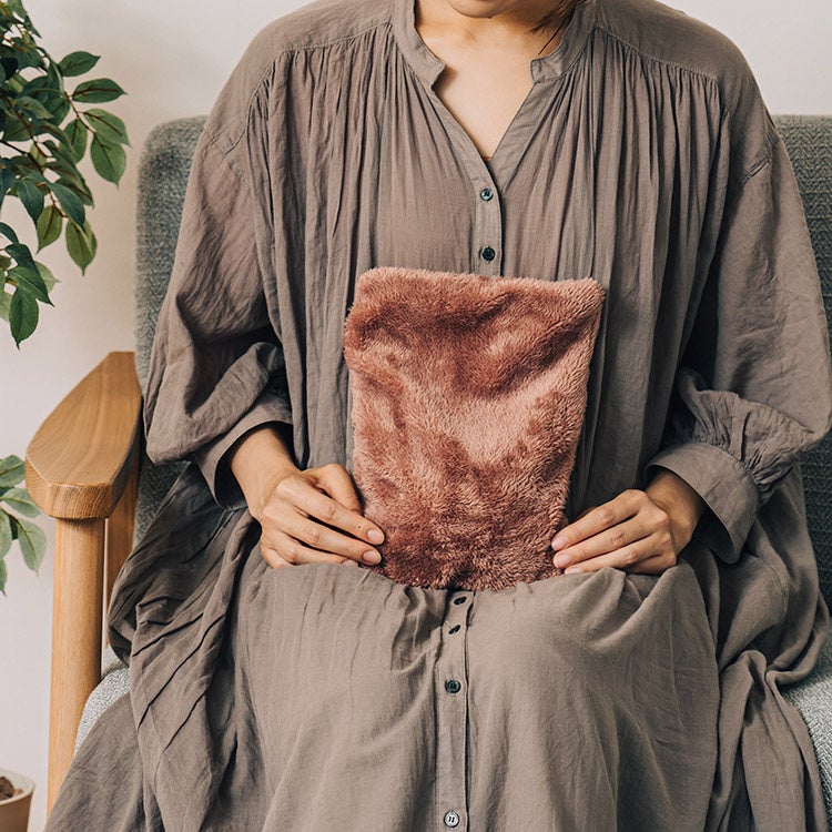 コードレスで温めたい箇所にしっかり当てることができ、もこもこのカバーで見た目もあたたか。