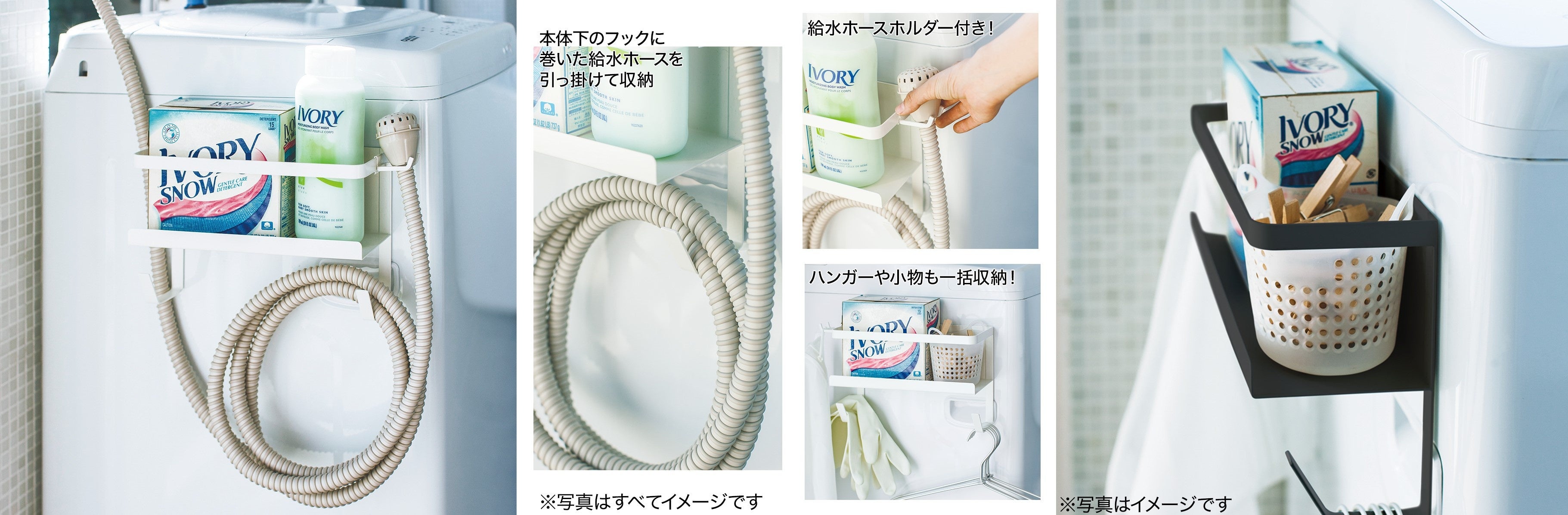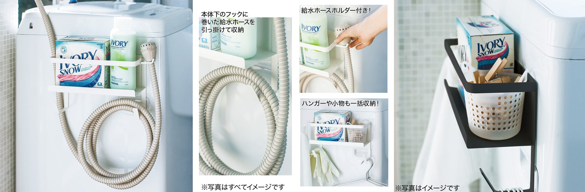■強力マグネットが便利!置き場所に困る洗濯機まわりの収納に大活躍の、浮かす収納