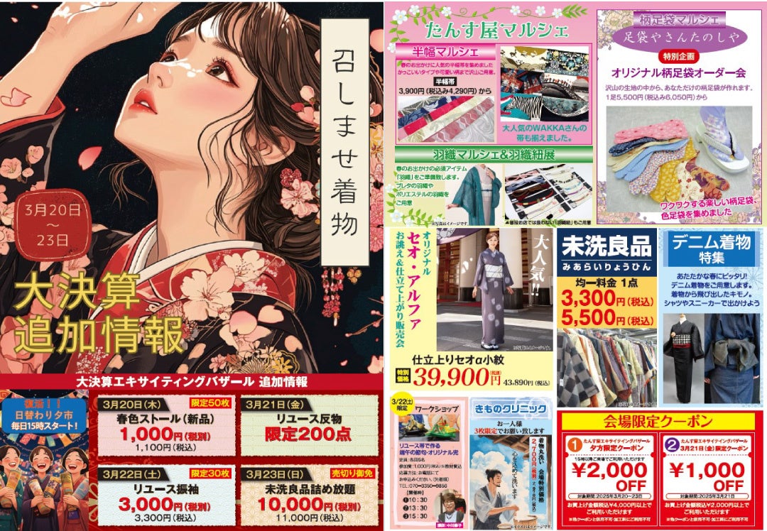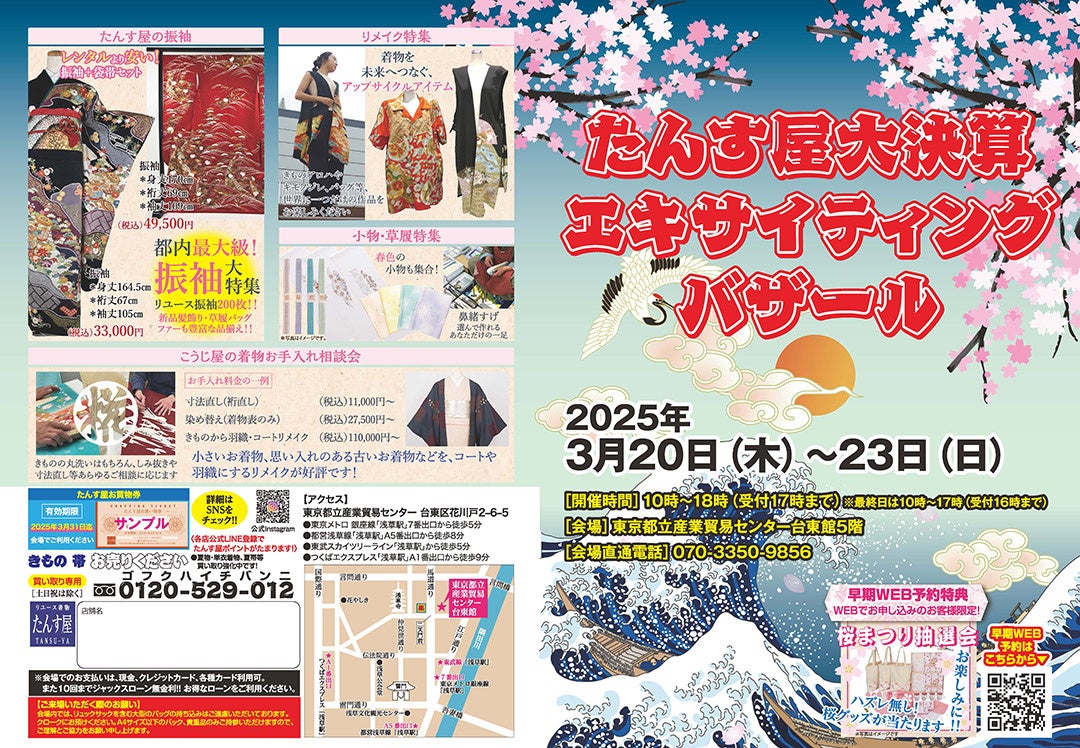 リユース着物「たんす屋」が展示即売会「大決算エキサイティングバザール」を開催!2025年3月20日(木・祝)から3月23日(日)まで【WEB予約特典有】