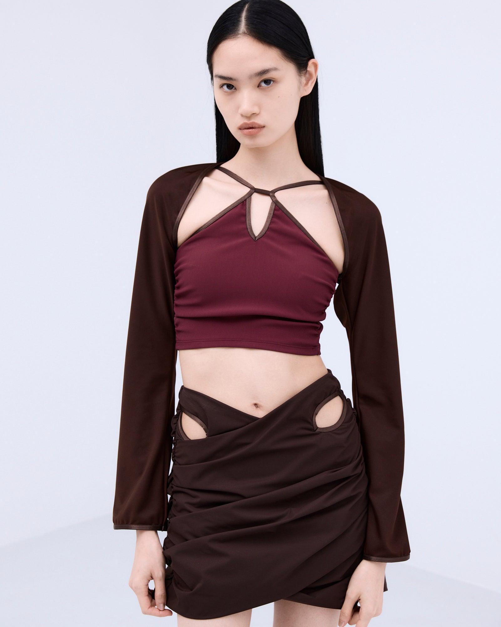 トップス:BOLERO & CAMI SWIM SET ¥19,800(tax in) Color:BEIGE / BORDEAUX / BLACK