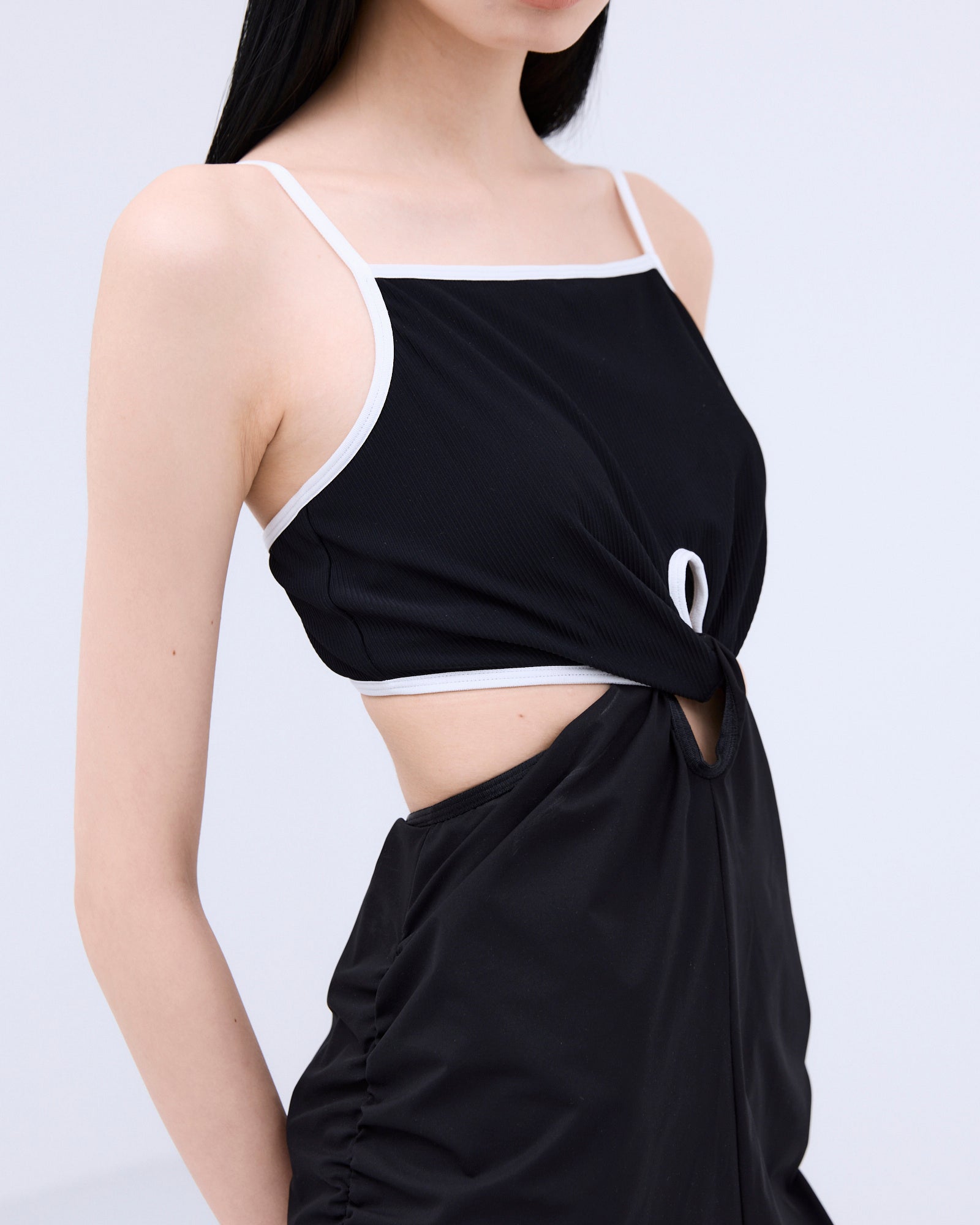 ワンピース:TWISTED SWIM DRESS ¥25,300(tax in) Color:BEIGE / BORDEAUX / BLACK