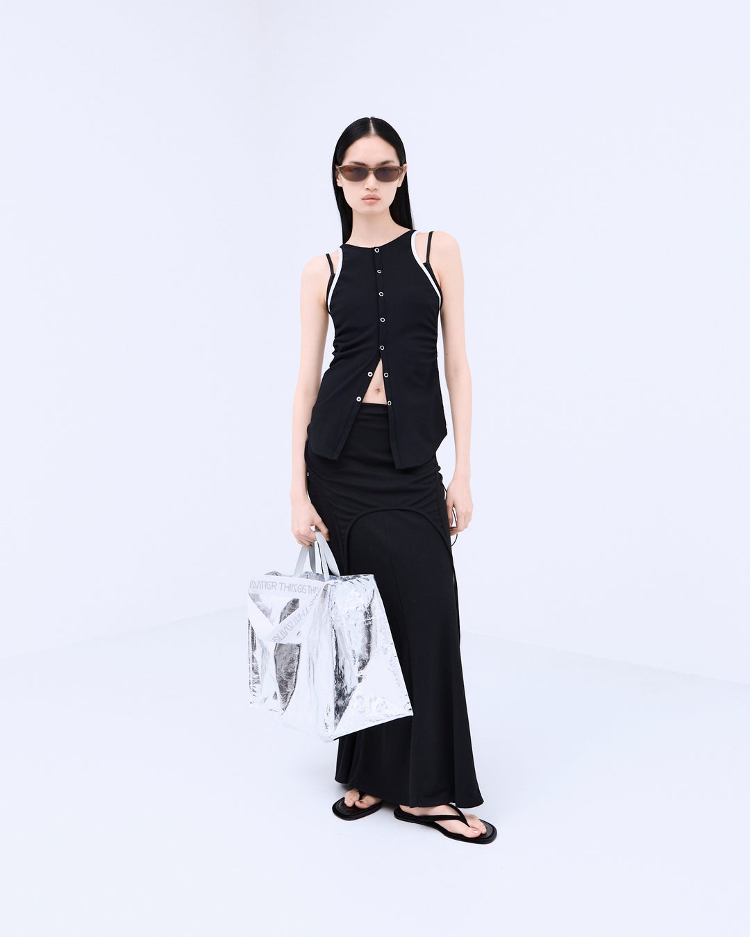 UVカット機能が付与された上品な肌見せが叶うスイムウェアは、様々な着こなしやレイヤードをお楽しみいただける計4型のラインナップ。さらに、あらゆるレジャーシーンで活躍する2WAYトートバッグも合わせて発売いたします。