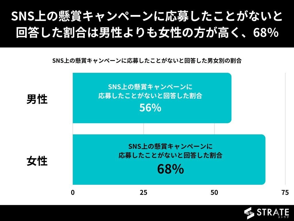 【SNS上の懸賞キャンペーンに応募したことがないと回答した割合は男性よりも女性の方が高く、68%】