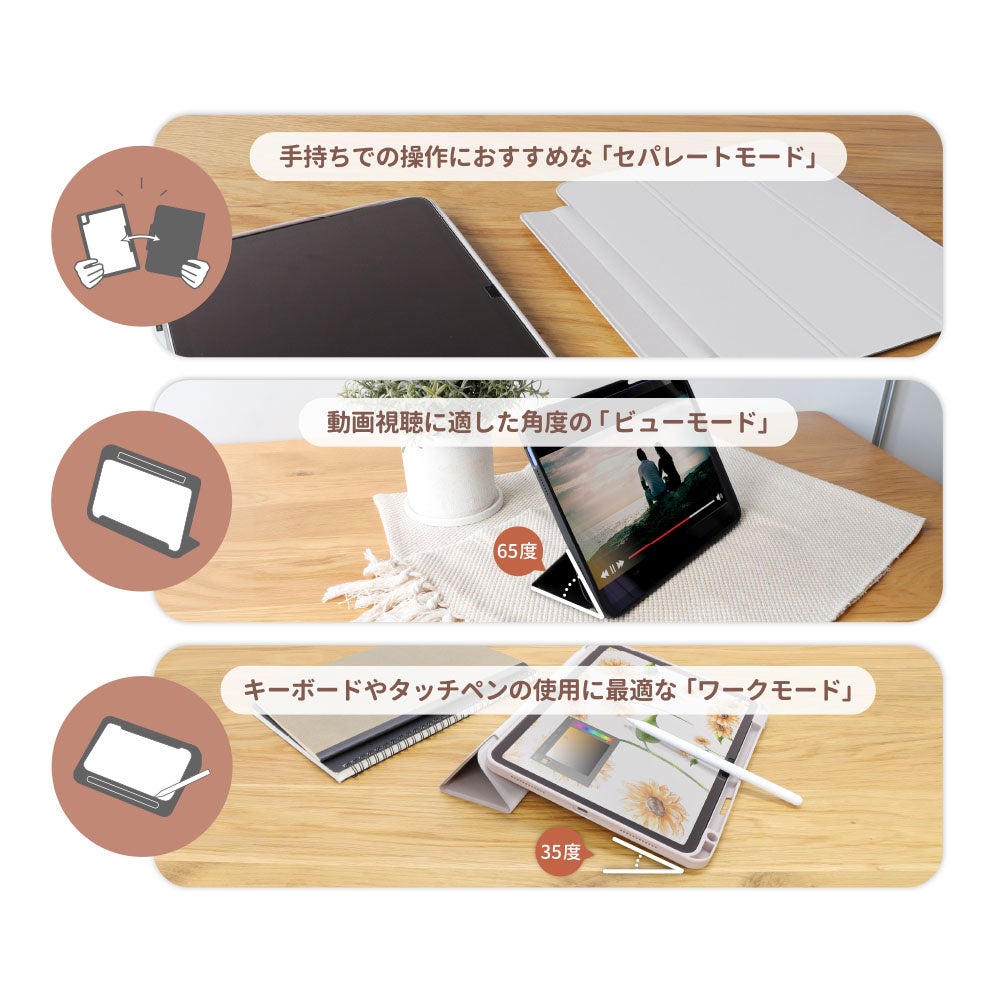 使い方に合わせてカバーを簡単着脱。iPad (第10世代)、iPad Air (M2)、iPad Air (第5/4世代)に対応した、マグネットカバー 3WAYケースが発売。