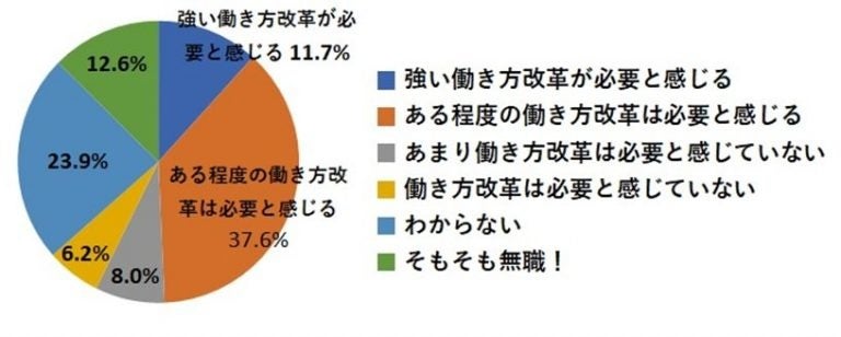 逆に「あまり働き方改革は必要と感じていない」と「働き方改革は必要と感じていない」の合計は14.2%にとどまっています。