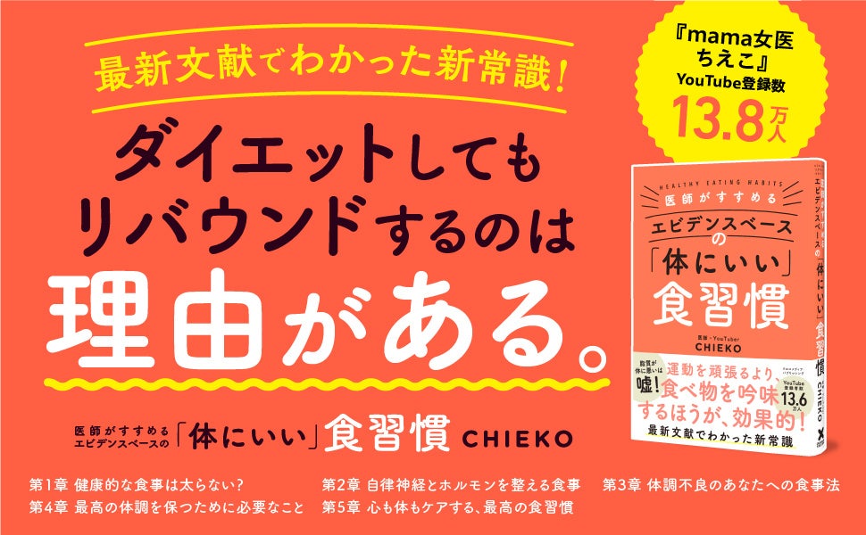 株式会社クロスメディア・パブリッシング(東京・渋谷区、代表取締役・小早川幸一郎)は、2022年9月27日に書籍『医師がすすめる エビデンスベースの「体にいい」食習慣』を刊行します。本書は登録者13.8万人の人気医師YouTuberのCHIEKOさんによる、エビデンスに基づく食事法を解説する1冊です。最新文献でわかった「食習慣の新常識」で情報を知ってすぐ健康に役立てましょう。