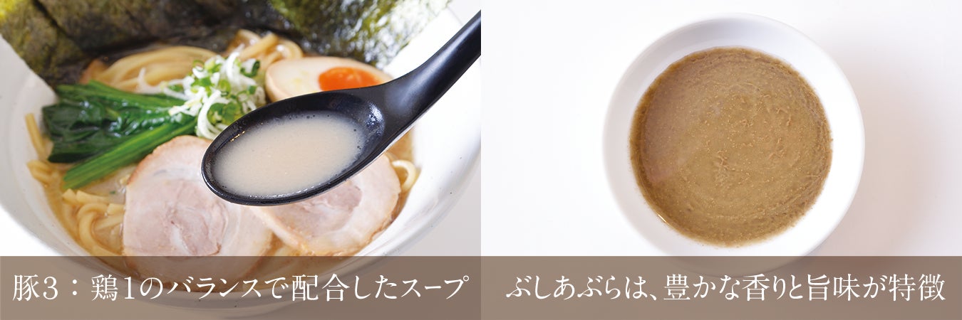 豚骨らーめんが苦手な方も、鶏をブレンドすることでクセがなくおいしく食べられるように味を設計しました。配合比 3:1の美味しいスープをお愉しみいただけます。