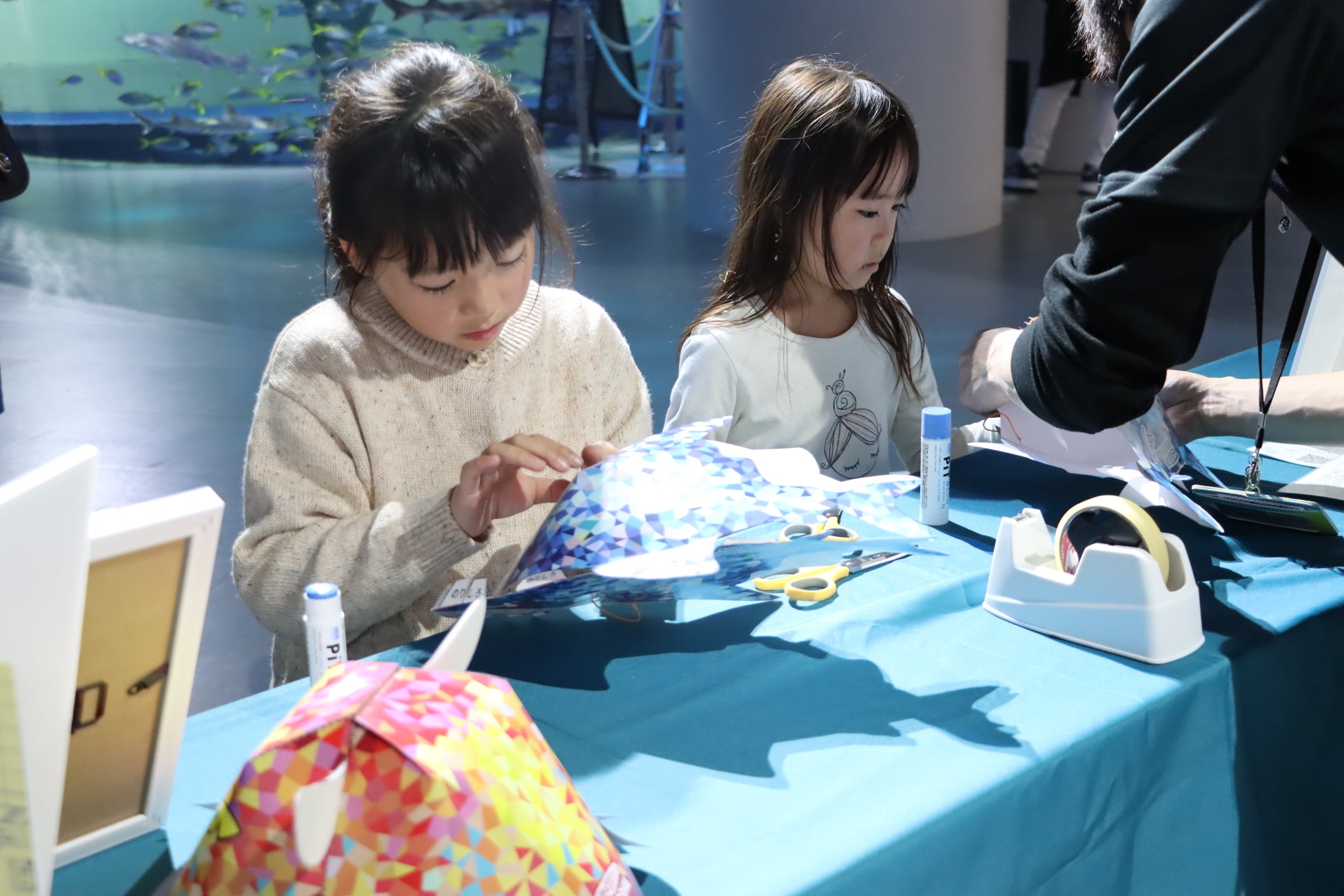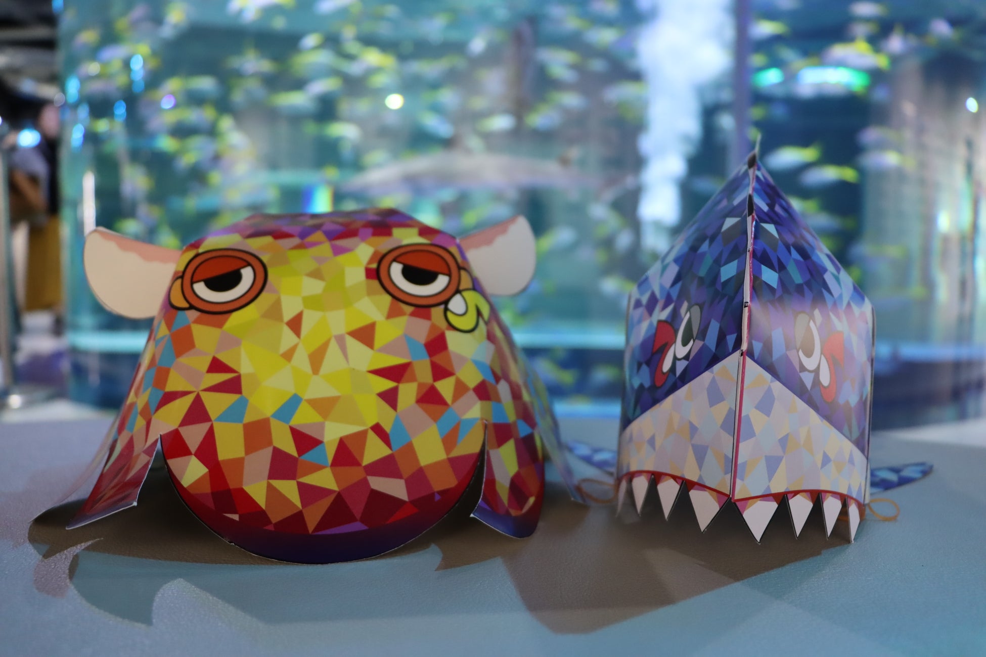 また、めんだことさめの帽子が作れる「ワークショップ」では、親子で参加される方も多く、お土産に持ち帰ったり、帽子を被って館内を楽しんだりする姿がたくさん見られました。その後も、たくさんの方から再開を希望するお声を受け、この度、本イベントを再開催することとなりました。