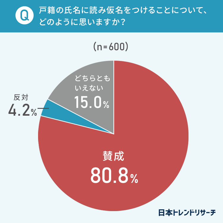 【戸籍法改正】戸籍の氏名に「読み仮名」をつけることについて、80.8%が「賛成」
