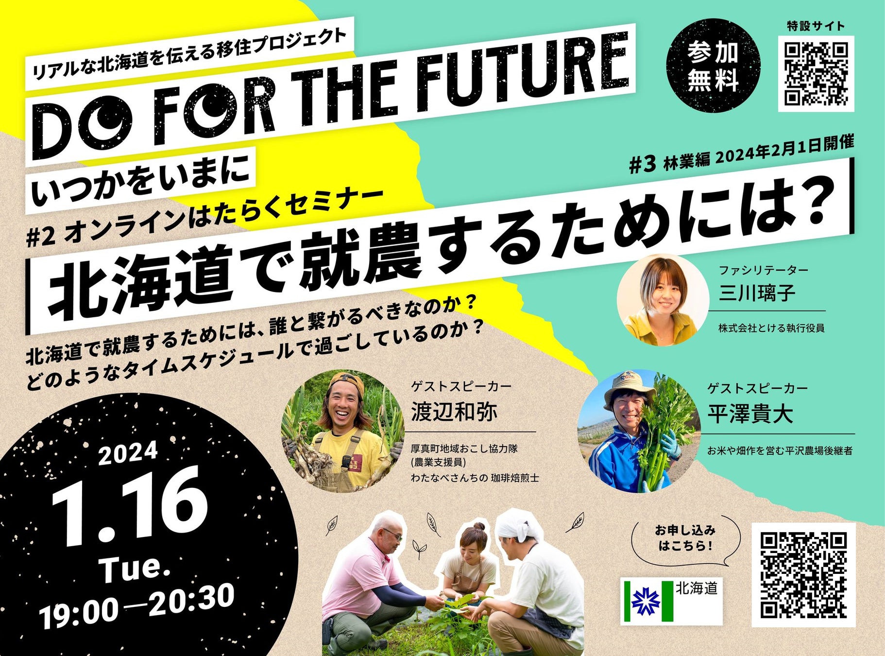 リアルな北海道を伝える移住プロジェクト「DO FOR THE FUTURE いつかをいまに」オンラインはたらくセミナー(農業編)の開催について