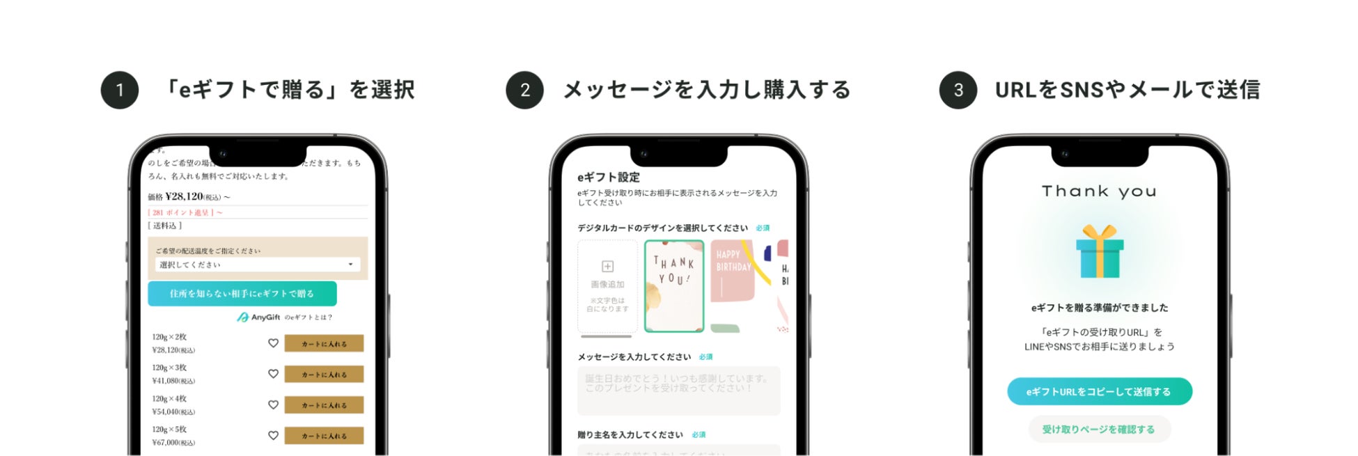 eギフトURLから住所を入力いただくだけで対象商品が届きます